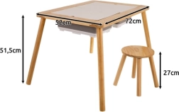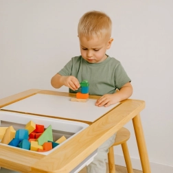 V kompletu je robusten lesen stolček z idealno višino za otroke od 3 let. Zagotavlja ergonomski položaj pri ustvarjanju in učenju.
