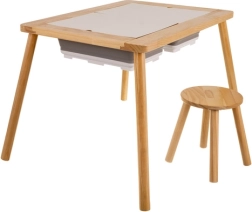 Miza je navdihnjena z Montessori metodologijo – spodbuja razvoj čutov, fine motorike in samostojnosti. Ergonomski leseni stolček zagotavlja pravilen položaj pri igri in učenju. Zahvaljujoč skandinavskemu dizajnu in naravnemu lesu se poda v vsako otroško sobo ali dnevni prostor.