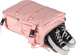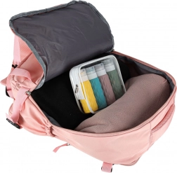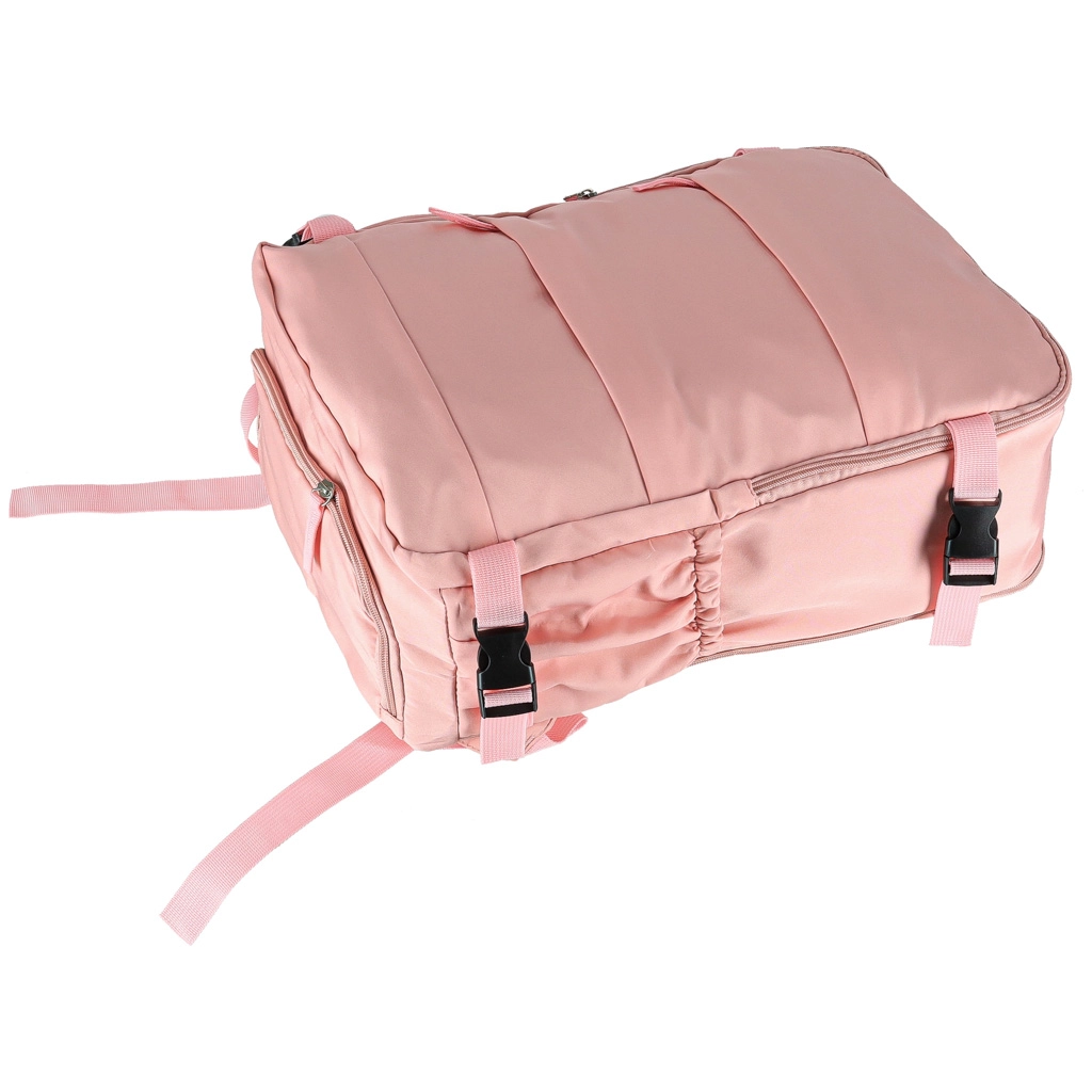 Iščete vsestranski nahrbtnik za izlete, letalo in vsakodnevno uporabo? Ta rožnat potovalni nahrbtnik združuje kompaktne mere s premišljeno organizacijo. Tri komore, vključno z ločenim spodnjim predalom na zadrgo, ohranjajo obutev ali perilo ločeno od ostalih stvari, medtem ko sprednja žepa na zadrgo in elastična stranska žepa sprejmeta plastenko in drobnarije pri roki.