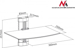 Maclean MC-663 je kakovostna stenska polica s 5 mm kaljenim steklom, ki vaše multimedijske naprave drži varno in vedno pri roki. Minimalistična zasnova s črnim steklom se odlično ujema z modernimi televizorji in interierji.