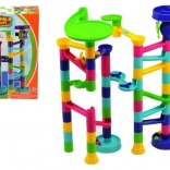 Postavljanje steze in sledenje kroglic po progi pomaga pri razvoju fine motorike in logičnega razmišljanja otrok.