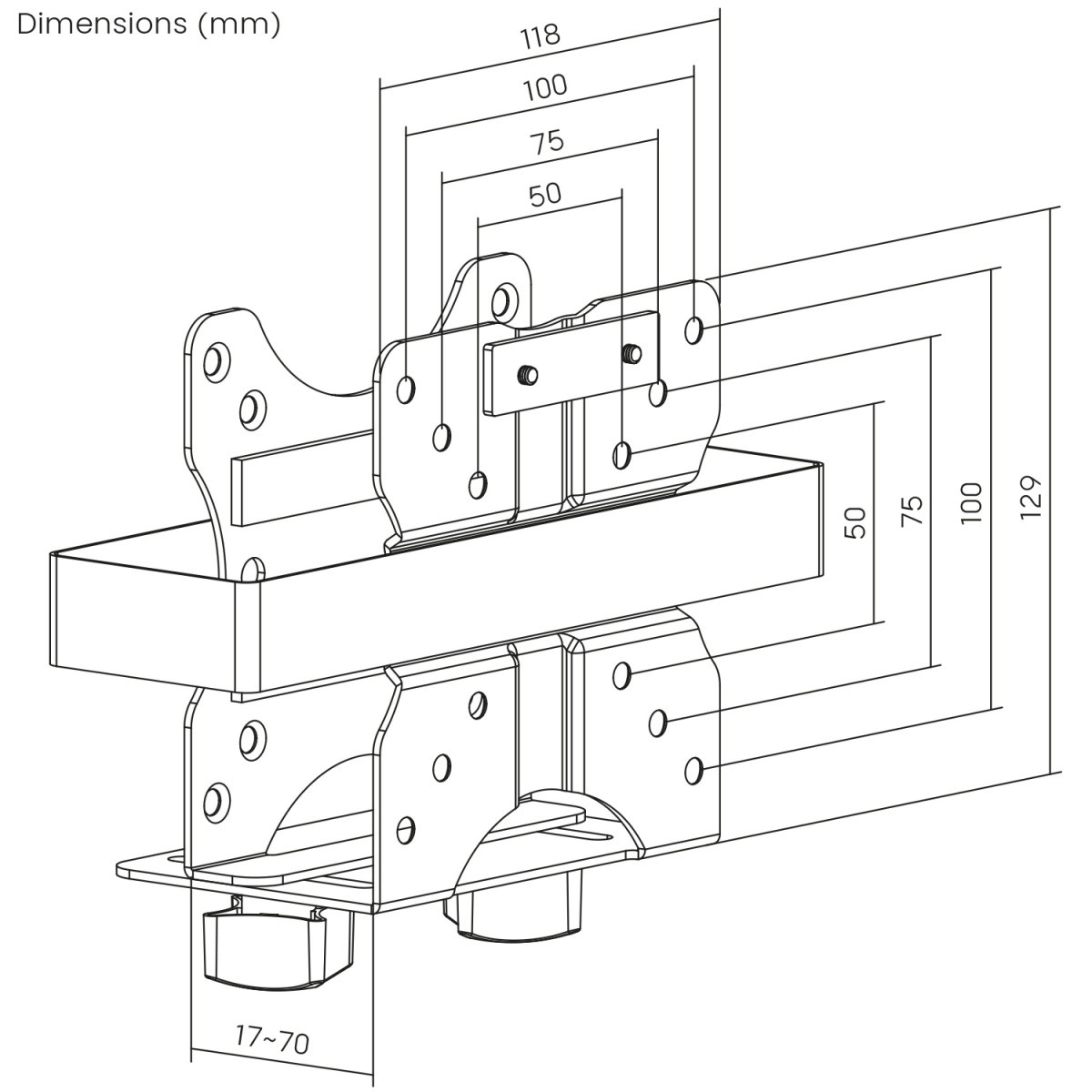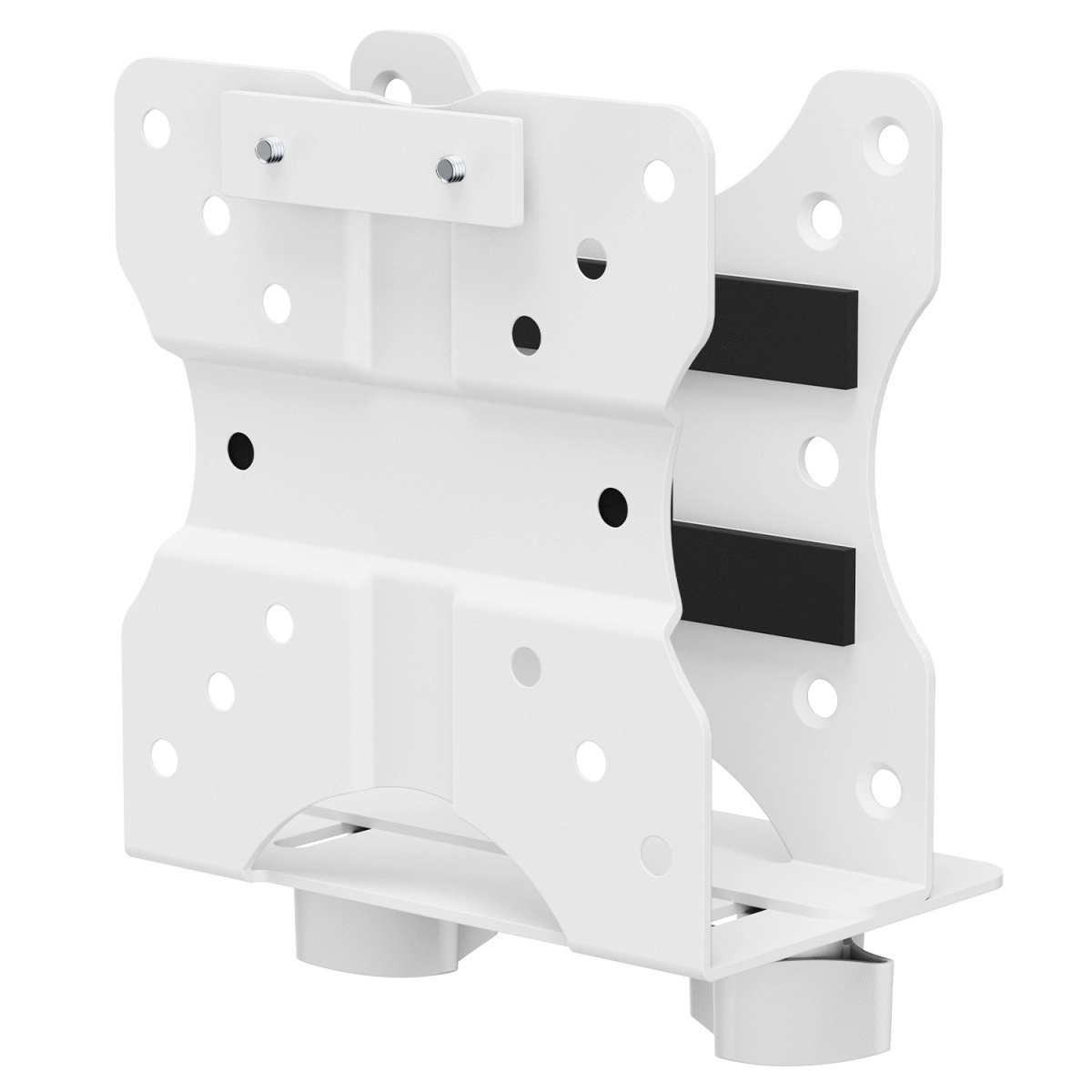Nastavljiva globina v razponu 17–70 mm pokriva širok spekter mini PC in tankih odjemalcev, medtem ko robustna izdelava z nosilnostjo do 5 kg zagotavlja dolgotrajno stabilnost. Varnostni trak z zaponko preprečuje nenamerno zdrsnjenje naprave tudi v okoljih z vibracijami.