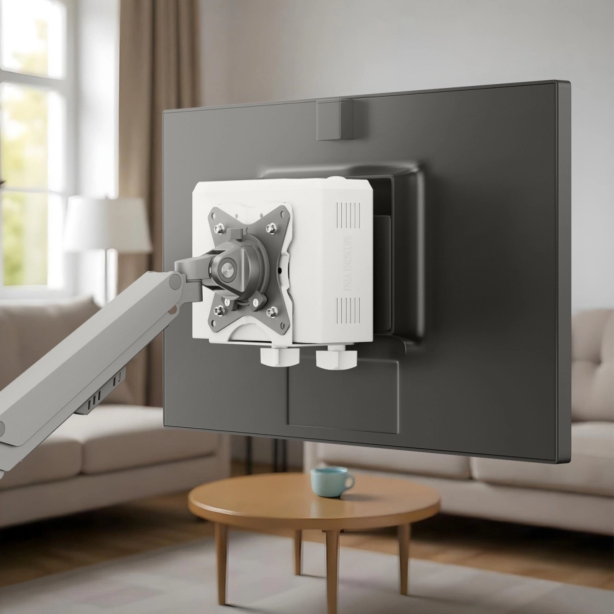 Nosilec podpira standard VESA, zato ga lahko pritrdite neposredno na steno, na zadnjo stran monitorja ali na roko/konzolni sistem. Omogoča prilagodljivo in urejeno ureditev delovnega mesta brez kompromisov pri ergonomiji.
