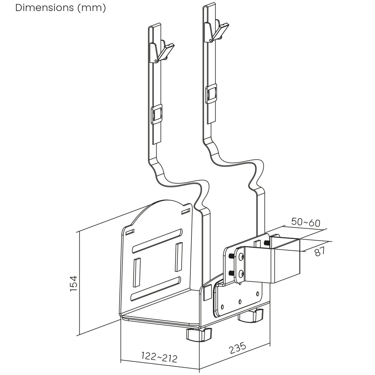 Zahvaljujoč nastavljivemu razponu globine nosilec enostavno prilagodite večini tower ohišij. Dvojni čvrsti trakovi z zaponko držijo PC trdno na mestu in preprečujejo neželeno premikanje ob vibracijah ali naključnih udarcih. Vse to pri nosilnosti do 10 kg, kar pokriva običajne pisarniške in domače sestave.