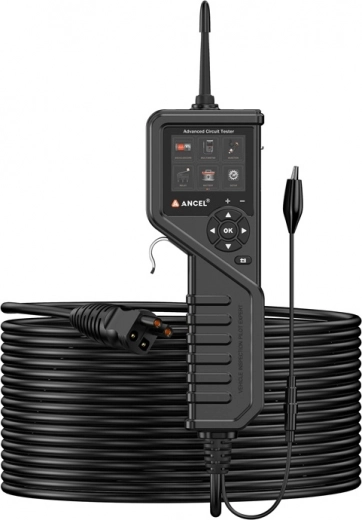 Zmogljiv preizkuševalnik tokokrogov ANCEL PB600 za vozila 12–24 V ponuja 8 diagnostičnih načinov, merjenje DC/AC napetosti, frekvenc do 1 MHz, test injektorjev in relejev ter preverjanje diod in povezljivosti. Barvni 2,4" TFT zaslon prikazuje vrednosti in poteke v realnem času ter omogoča hitro odkrivanje kratkih stikov, prekinitev ali nestabilnega napajanja.