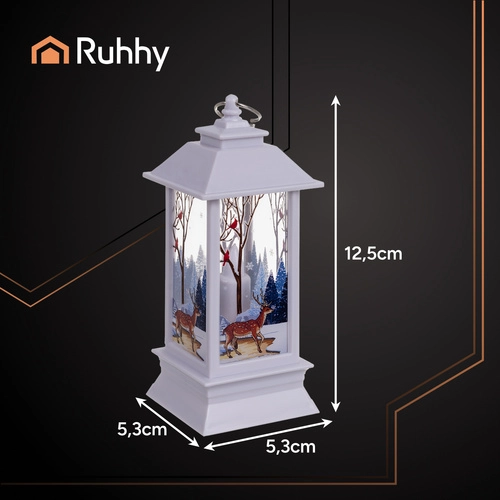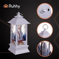 Ta stilska dekorativna lanterna v beli barvi z zimskimi in božičnimi motivi v prostor vnese toplo, prijetno svetlobo. Vgrajena LED svetloba z učinkom sveče ustvari prijetno atmosfero brez tveganja odprtega ognja – idealna izbira za dom in komercialne prostore.