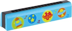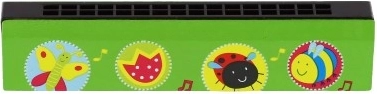 Ta otroška lesena harmonika je odličen začetek za vstop v svet glasbe. Zaradi čvrste lesene konstrukcije in veselih vzorcev otroke zlahka pritegne ter motivira k odkrivanju zvokov in melodij. Lahka in dobro oprijemljiva, idealna za male začetnike.