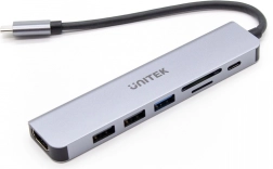 Razširite možnosti svoje naprave z USB‑C s tem univerzalnim hubom 7v1. Hkrati priključite tipkovnico, miško, zunanji disk, kartico iz fotoaparata in monitor v 4K – vse prek enega porta. Zahvaljujoč prehodnemu Power Delivery 100 W lahko obenem delate in polnite prenosnik brez kompromisov.