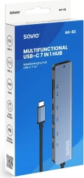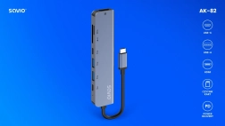Savio AK‑182 razširi vaše naprave s sedmimi praktičnimi vmesniki brez dodatnih adapterjev. Prek HDMI zlahka povežete monitor, projektor ali TV s podporo 4K pri 30 Hz za ostro sliko brez zamikov. Dva priključka USB‑A zagotavljata združljivost z dodatno opremo – eden za hiter prenos podatkov, drugi za miško, tipkovnico ali tiskalnik.