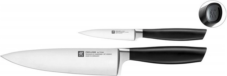 Ta stilski črni set 2 nožev ALL STAR je idealen za hitro in natančno pripravo sestavin. Kratko 10 cm rezilo je popolno za rezanje sadja in zelenjave, lupljenje in natančno delo, drugi nož pa služi kot vsestranski pomočnik v kuhinji.