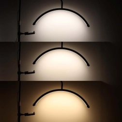 Nastavite barvno temperaturo 3000–5600 K od tople do hladne in prilagodite svetlost v 10 korakih tako, da ustreza trenutni aktivnosti. Stabilno podnožje in po višini nastavljivo stojalo (140–180 cm) skupaj z lokom 64 cm omogočata udobno osvetlitev iz idealnega kota. Integrirano držalo za telefon je odlično za beleženje dela ali posvetovanje referenc.