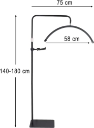 Težka osnova, višina 140–180 cm in integrirano držalo za telefon za udobno snemanje in dokumentiranje dela v salonu.