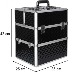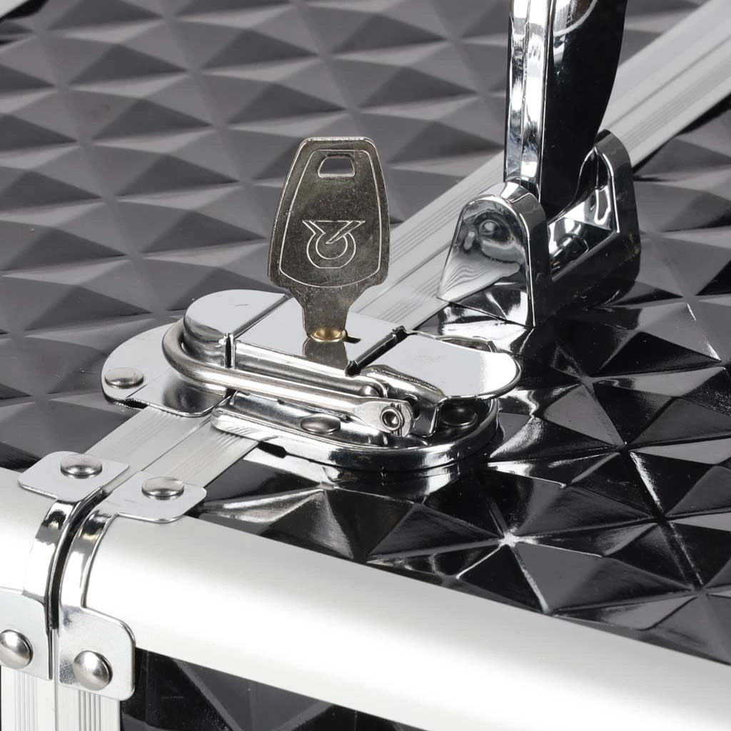 Kovček je zaklenljiv (priložena sta 2 ključa), zato bodo vaša kozmetika in orodja ostali na varnem. Zahvaljujoč ergonomskemu ročaju in kompaktnim meram ga zlahka prenesete v avto, studio ali na nastop.