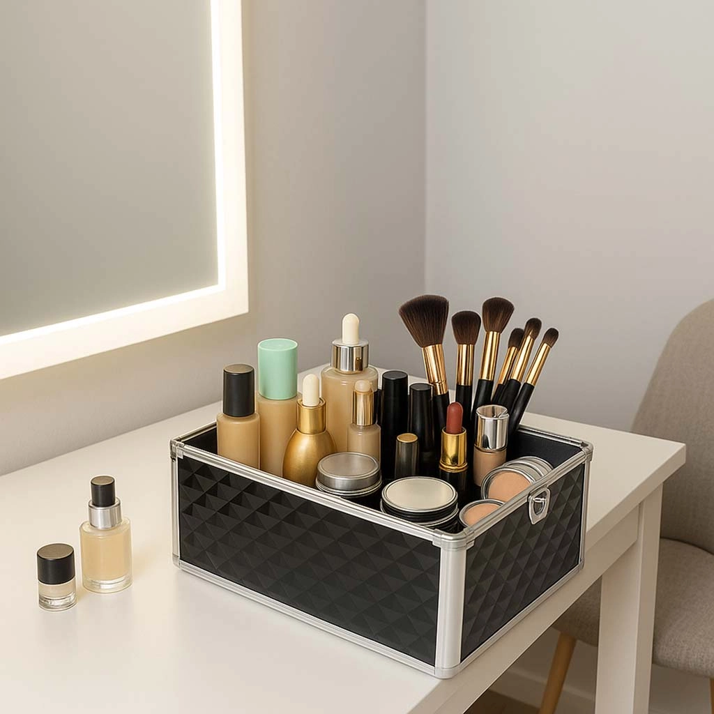 Ohranite svojo kozmetiko na varnem. V paketu sta priložena dva kovinska ključa za zanesljivo zaklepanje kovčka.