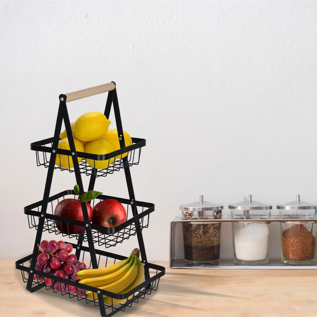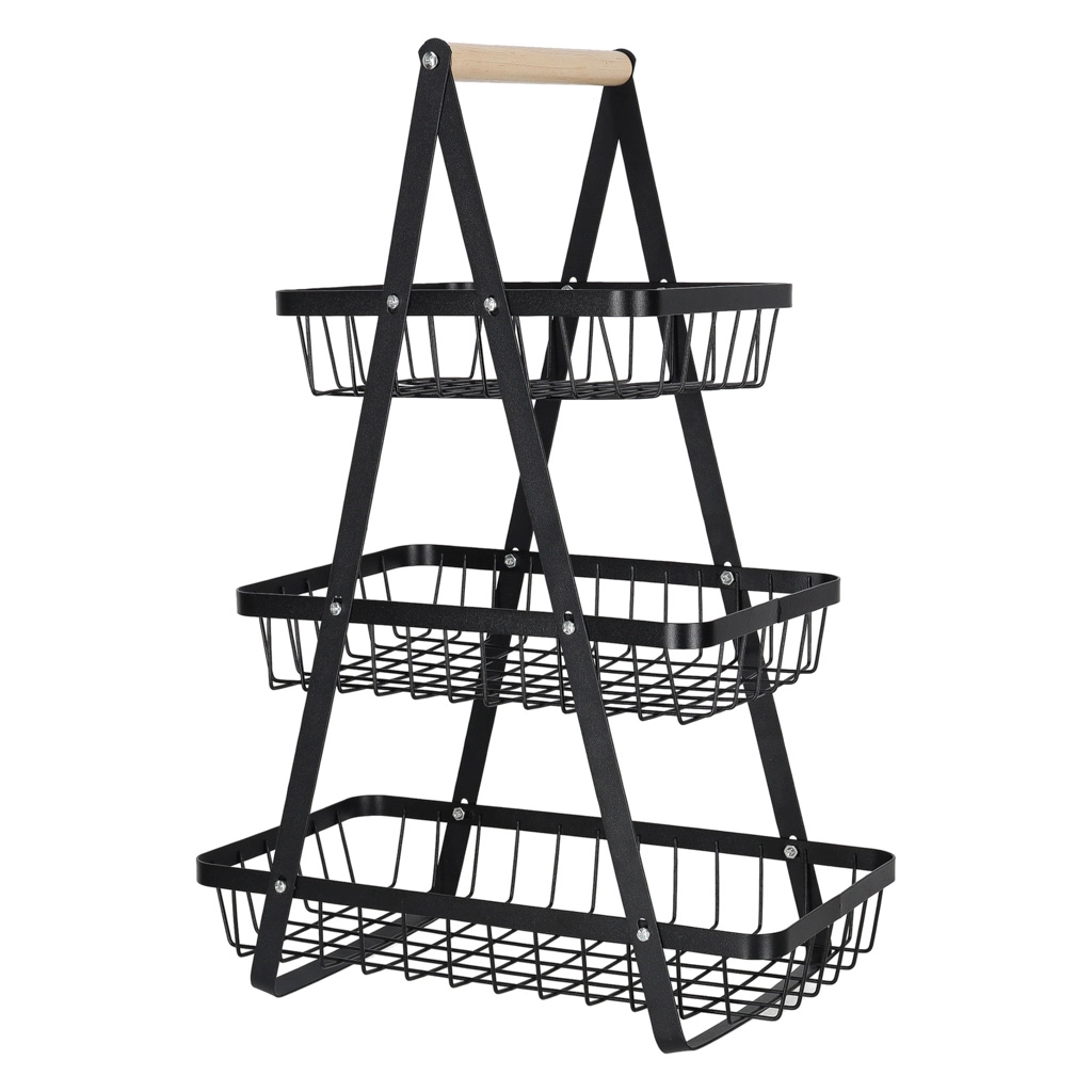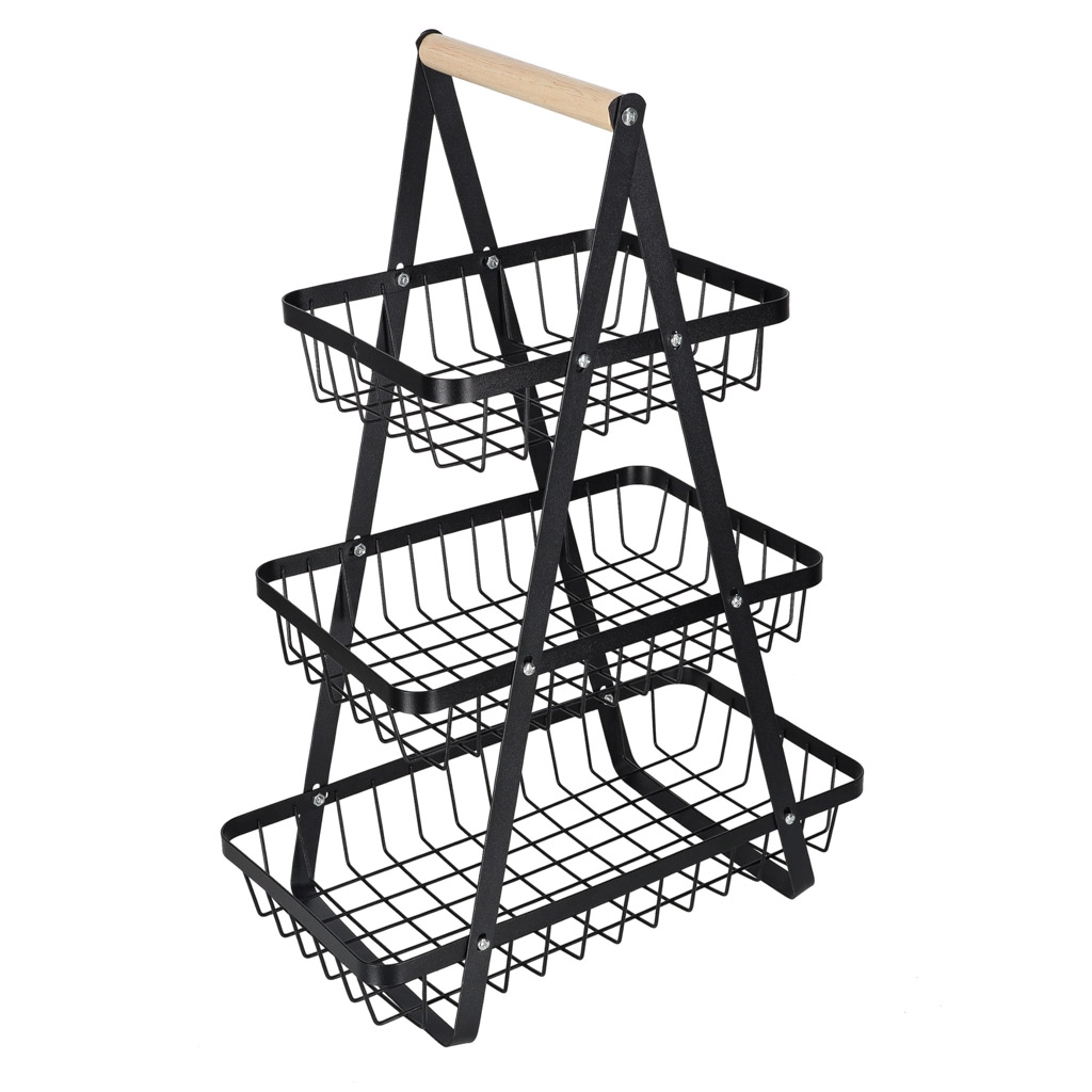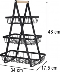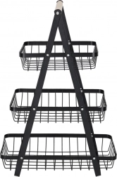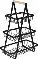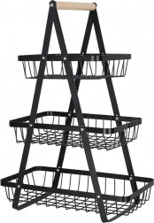 Uredite kuhinjo, shrambo ali jedilnico z elegantnim tristopenjskim stojalom. Robustna kovinska konstrukcija v mat črni barvi in udoben lesen ročaj zagotavljata stabilnost, vzdržljivost in enostavno prenašanje. Zaradi stopničaste razporeditve imate vsebino vedno na očeh in pri roki.