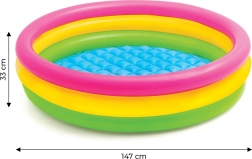 Uživajte v neskončnih vodnih radostih za vaše otroke z napihljivim bazenom Mavrica od INTEX! Ta pisani bazen ponuja varno in udobno okolje za igro na vrtu ali balkonu.