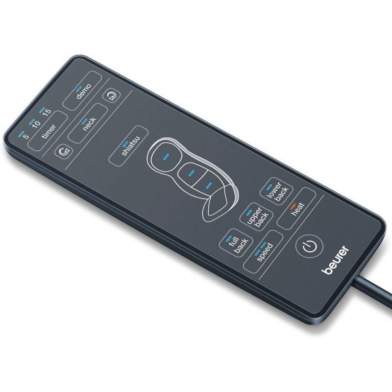 Masažo si enostavno prilagodite: izberite celoten hrbet, samo zgornji del, ledveni predel ali samostojno masažo vratu. Zahvaljujoč 2 hitrostma preklapljate med nežno sprostitvijo in intenzivnejšo masažo. Intuitiven daljinski upravljalnik z jasnim označevanjem con olajša uporabo. Časovnik s samodejnim izklopom prispeva k varnosti in udobju.