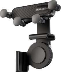 Nastavljiv zaskočni mehanizem z robustnim koleščkom trdno zagrabi rob zaslona ali konzole in varno drži telefon tudi na neravninah.