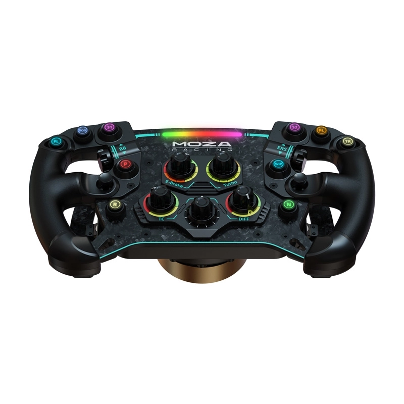 Za maksimalen nadzor so na voljo 8 RGB gumbov, zadnja 2 programabilna gumba, 3 vrtljivi enkoderji, 2 koleščka, 7-smerno stikalo in joystick. Deset LED indikatorjev vrtljajev s 16,7 milijona barv je mogoče konfigurirati v MOZA Pit House, prav tako celoten uporabniški vmesnik zaslona. Hiter aluminijast quick-release omogoča bliskovito menjavo obročev, brezžična in žična povezava zagotavlja polno združljivost z bazami MOZA in prek univerzalnega adapterja tudi podporo tretjih strani.