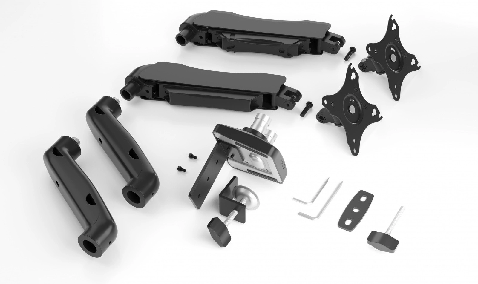 Vzdržljivi materiali in dvojni vijačni mehanizem zagotavljajo stabilno oporo za monitorje do 9 kg na roko.