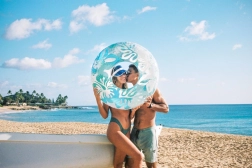 Vpadljiv havajski cvetlični potisk doda vašemu poletju barve in je odličen tako za bazen kot za plažo.