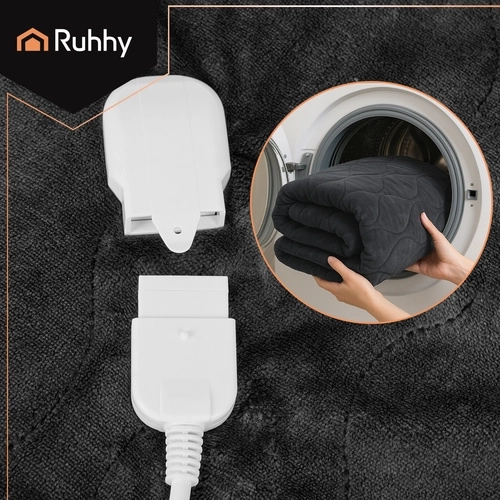 Upravljanje je preprosto – daljinski upravljalnik z LED-zaslonom omogoča enostavno nastavitev temperature. Odeja ima termostat in zaščito pred pregrevanjem za varno uporabo. Zahvaljujoč odstranljivemu kablu jo lahko perete pri 30 °C. Certifikat OEKO-TEX® potrjuje, da je prijazna do kože.