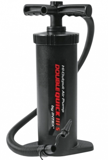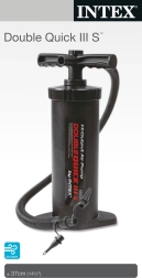 Ročna pumpa DOUBLE QUICK III S Intex je ročna pumpa s cevjo za hitro napihovanje in izpihovanje bazenov, vzmetnic, ležalnikov, žog ali otroških igrač. Dvojno delovanje omogoča črpanje pri gibanju navzgor in navzdol. Za napihovanje ali izpihovanje je dovolj spremeniti smer pretoka zraka. Pumpa ima visok pretok zraka za hitrejše napihovanje.