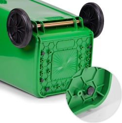 Za udobno premikanje skrbijo gumijasta kolesa na kovinski osi in ergonomski ročaji s proti-zdrsnim profilom. Stabilizacijske nogice omejujejo drsenje po mokri podlagi in ščitijo tla pred praskami. Posoda je v celoti združljiva s komunalnimi vozili po EN 840 in zaradi standardov ISO9001, ISO14001, ISO45001 izpolnjuje visoke zahteve glede kakovosti in varnosti.