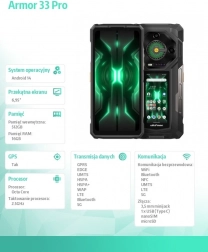 Monstruozna 25.500 mAh baterija zmore dneve brez polnjenja, podpora 66 W skrajša čas dopolnjevanja energije, 10 W obratno polnjenje pa oživi vaše druge naprave. S certifikacijo IP68/IP69K in MIL‑STD‑810H se Armor 33 Pro ne ustraši vode, prahu ali udarcev. Samoumevni so 5G, Wi‑Fi 6, Bluetooth 5.4, NFC, natančna navigacija ter praktična 3,5 mm vtičnica in USB‑C.
