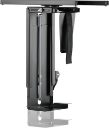 Praktičen nosilec za montažo računalnika pod mizno ploščo pomaga ohranjati delovno površino čisto in ergonomsko. Univerzalna nastavljiva zasnova sprejme različne velikosti ohišij, trdna kovinska konstrukcija pa zagotavlja stabilno in varno pritrditev.
