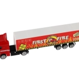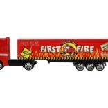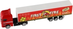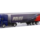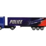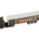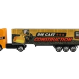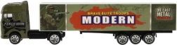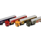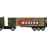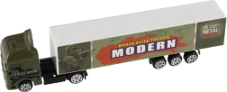 Odkrijte podrobno izdelan tovornjak s prikolico, ki ne sme manjkati v nobeni zbirki avtomobilčkov. Kovinska kabina daje modelu realističen videz in večjo vzdržljivost, medtem ko plastični dodatki ohranjajo nizko težo za enostavno upravljanje. Zahvaljujoč prostemu teku zadošča lahek potisk, da se tovornjak gladko zapelje.