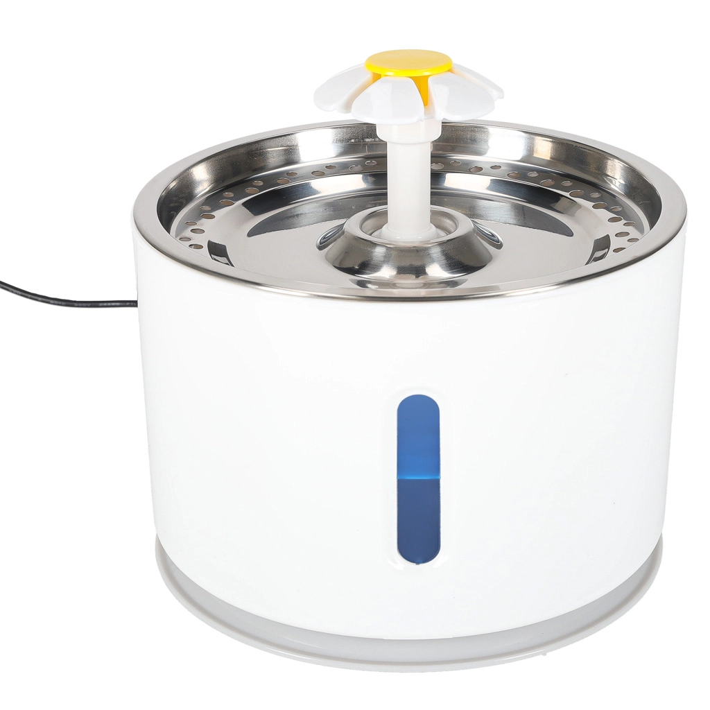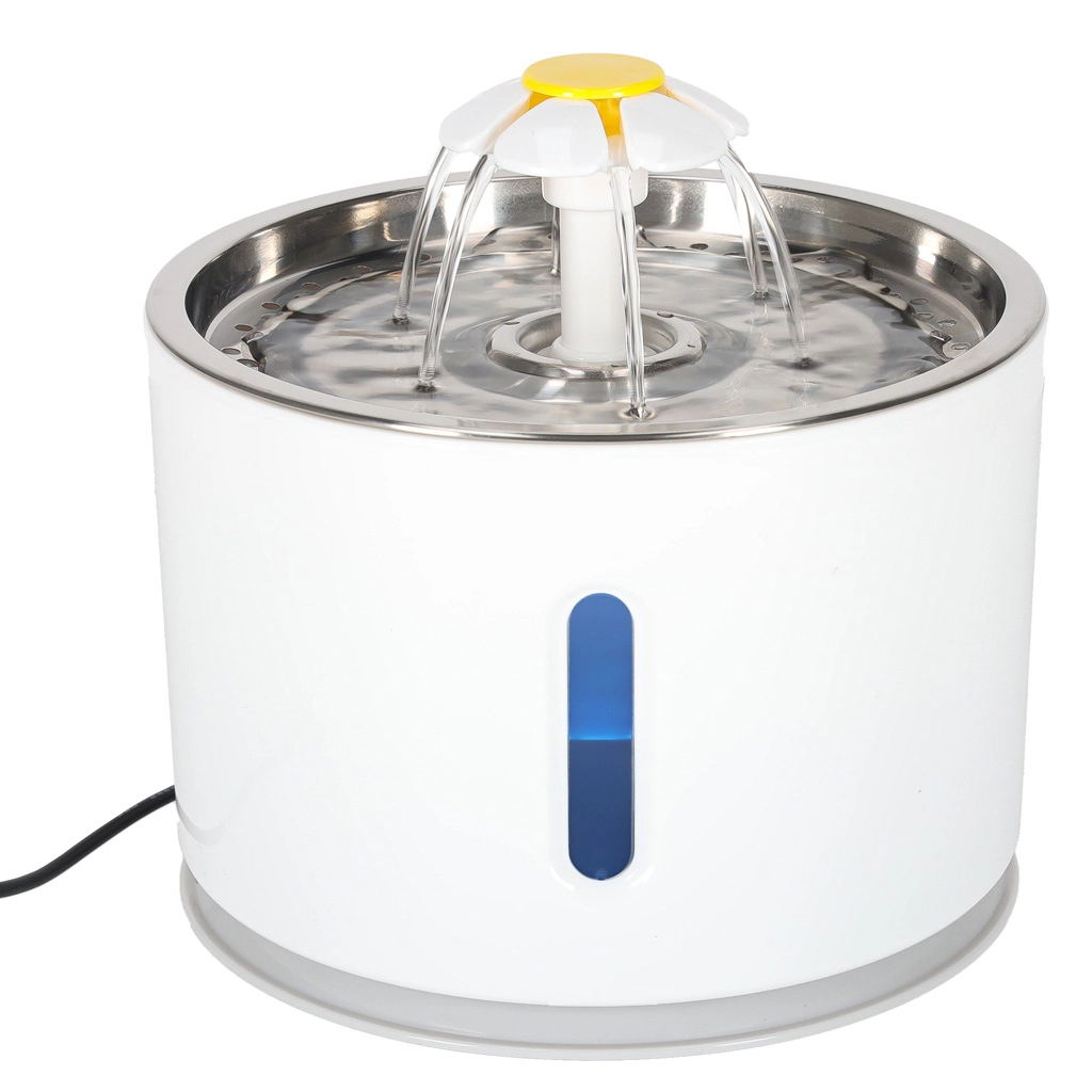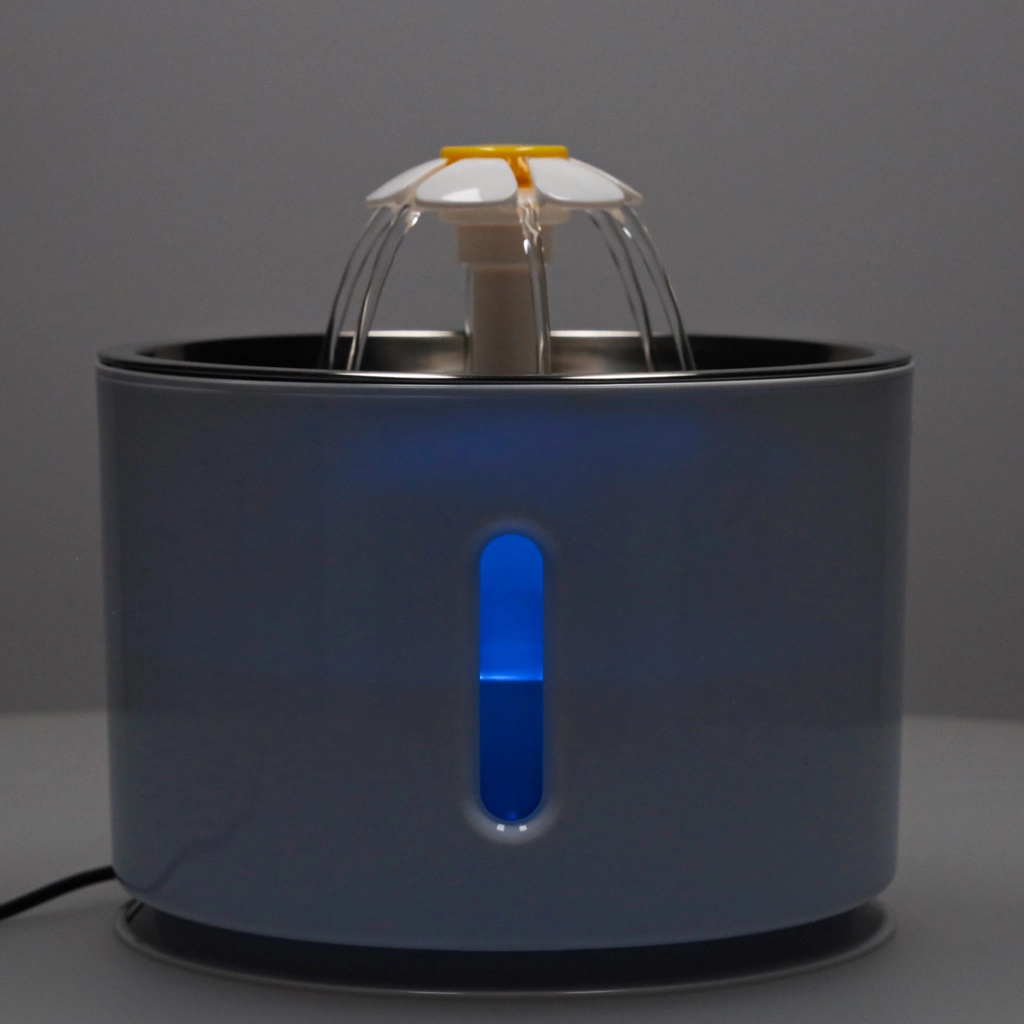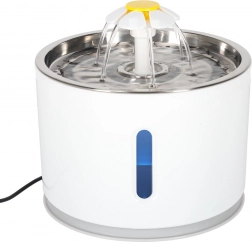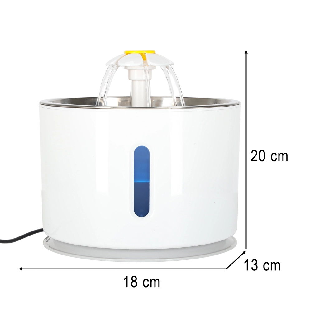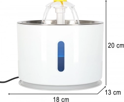 Samodejna napajalna fontana za pse in mačke zagotavlja neprekinjeno cirkulacijo vode, ki je zaradi pretoka hladnejša, čistejša in živali spodbuja k pogostejšemu pitju. Nerjavni zgornji del je higieničen in enostaven za čiščenje, pregledno okence z modro LED osvetlitvijo prikazuje trenutni nivo.
