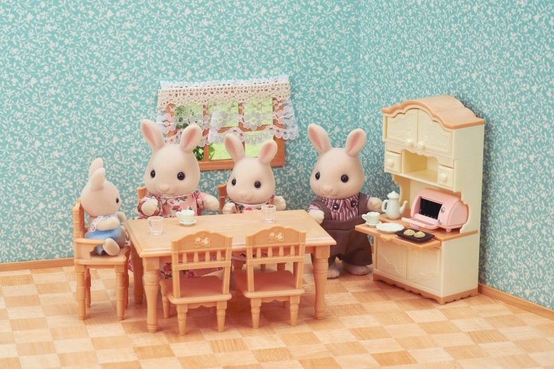 Precizni detajli, kot je kredenca z izvlečno ploščo, odpirajočimi se vratci in predali, dajejo igri pridih realističnosti in podpirajo kreativno pripovedovanje zgodb. Set je združljiv z ostalimi izdelki SYLVANIAN FAMILIES, zato lahko svoj igralni svet zlahka razširjate.