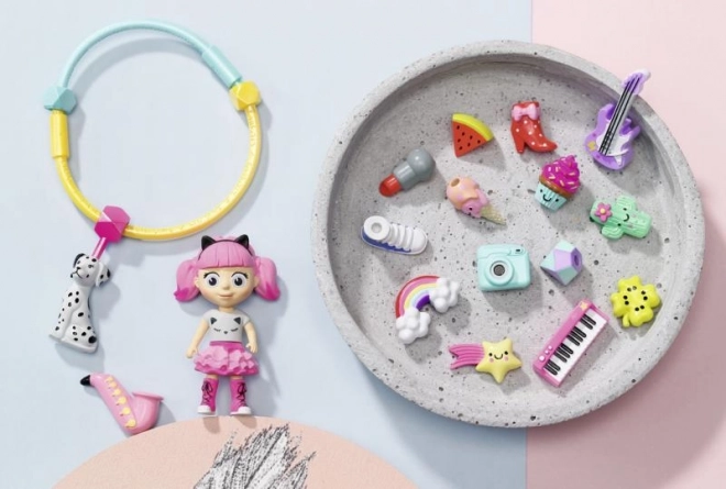 Preprost sistem spajanja omogoča hitro menjavo obeskov in širjenje zbirke, ki jo lahko zbirate in menjate s prijatelji. Igrivi motivi (živalice, glasbeni instrumenti, moda) spodbujajo domišljijo in razvijajo fino motoriko.