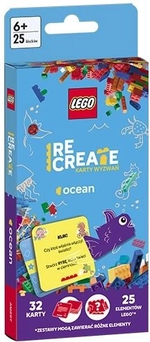 Odkrijte neskončno mero ustvarjalnosti s kartičnim kompletom LEGO Recreate: Izzivalne karte – ocean. Izžrebajte naloge, izberite kocke in zgradite izvirne modele, navdihnjene s podvodnim svetom. Odlično za na pot ali domačo igro, samostojno ali s prijatelji. 32 izzivalnih kart, 25 LEGO kock in kup idej za gradnjo, kot so podmornica, kit ali meduza, spodbujajo domišljijo, ustvarjalnost in spretnost otrok od 6 let naprej.