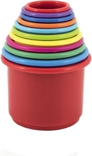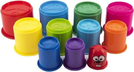 Set pisanih zložljivih lončkov vsebuje 11 delov, ki jih lahko uporabite za izdelavo visokega stolpa. Lončki so različnih barv in se lahko med seboj sestavljajo, kar je odličen način za razvijanje finih motoričnih spretnosti vašega otroka.