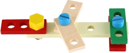 Ta izobraževalna igrača razvija fino motoriko, koordinacijo oko–roka ter logično in tehnično razumevanje. Lesena izvedba je vzdržljiva, prijetna na dotik in primerna za vsakodnevno igro.