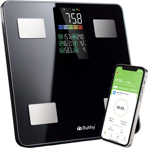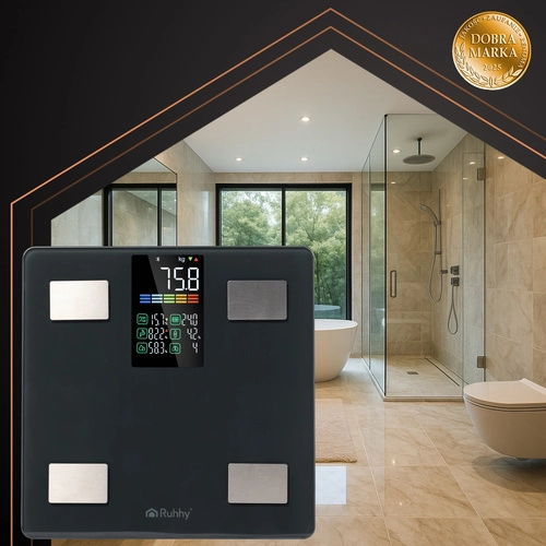 Upravljajte svoje cilje pametno in udobno. Analitična tehtnica RUHHY združuje natančno tehtanje z bioelektrično impedančno analizo (BIA), zato poleg kilogramov spremlja tudi ključne zdravstvene metrike. Mobilna aplikacija Feelfit shranjuje meritve, prikazuje trende in pomaga ocenjevati napredek skozi čas.