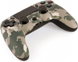 Krmilnik je združljiv s PlayStation 4 in PC, ponuja natančne analogne palice, odziven D-pad, večfunkcijsko sledilno ploščico (touchpad) ter praktičen 3,5‑mm avdio priključek za slušalke. Kamuflažni vzorec doda slog, osvetlitev pa olajša igranje v temi.