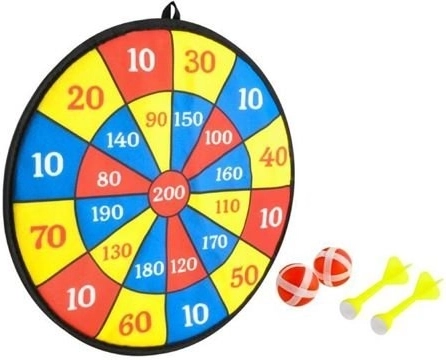 Klasična tarča za pikado – z žogicami in puščicami na ježka. Je idealna igrača, ki vadi natančnost in koordinacijo oči ter rok. Razdaljo od tarče je mogoče postopoma povečati, s čimer se poveča zahtevnost igre. Tarča ima prevlečeno površino iz vlaknate tkanine, na katero se dobro oprimejo žogice z našitimi trakovi z drobnimi kaveljčki. Ta igra s puščicami na ježka je odlična zabava za male in velike.