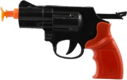 Plastična pištola z oranžno konico je idealna za otroške roke – enostavna za držanje, upravljanje in zlahka gre v nahrbtnik.