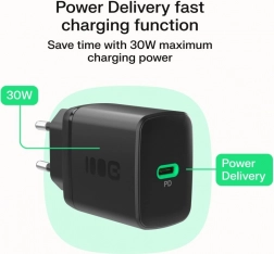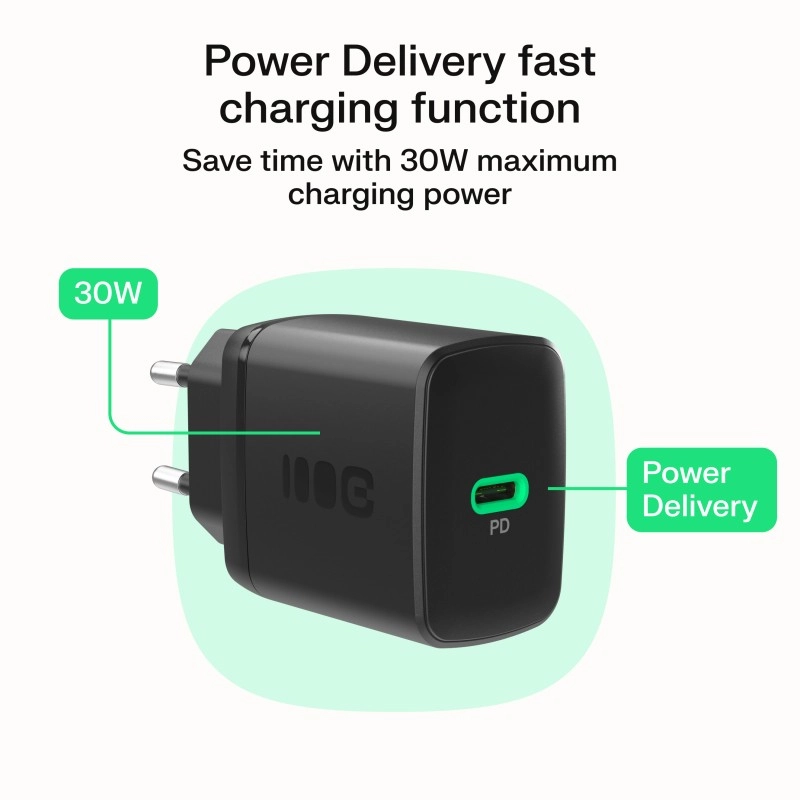 Uživajte v hitrem in varnem polnjenju z močjo 30 W in tehnologijo USB‑C Power Delivery. Polnilec napolni vaš telefon do približno 80 % v okoli 40 minutah, zato manj čakate in več postorite. Zaradi kompaktnih dimenzij je idealen za dom, pisarno in potovanja.