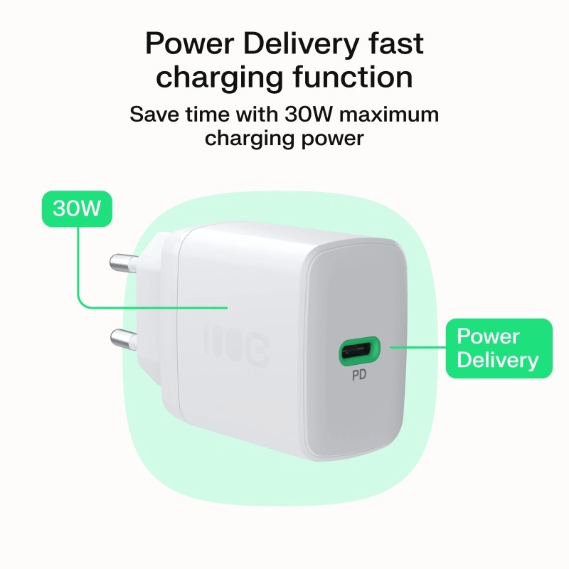 Izkoristite hitro polnjenje USB‑C Power Delivery 30 W in napolnite telefon do 80 % približno v 40 minutah. Ena sama USB‑C vrata napajajo širok nabor sodobnih naprav, vključno z Apple iPhone, Samsung Galaxy in Google Pixel ter brezžičnimi slušalkami. Kompaktno ohišje z zaobljenimi robovi je idealno za vtičnico doma in na poti.
