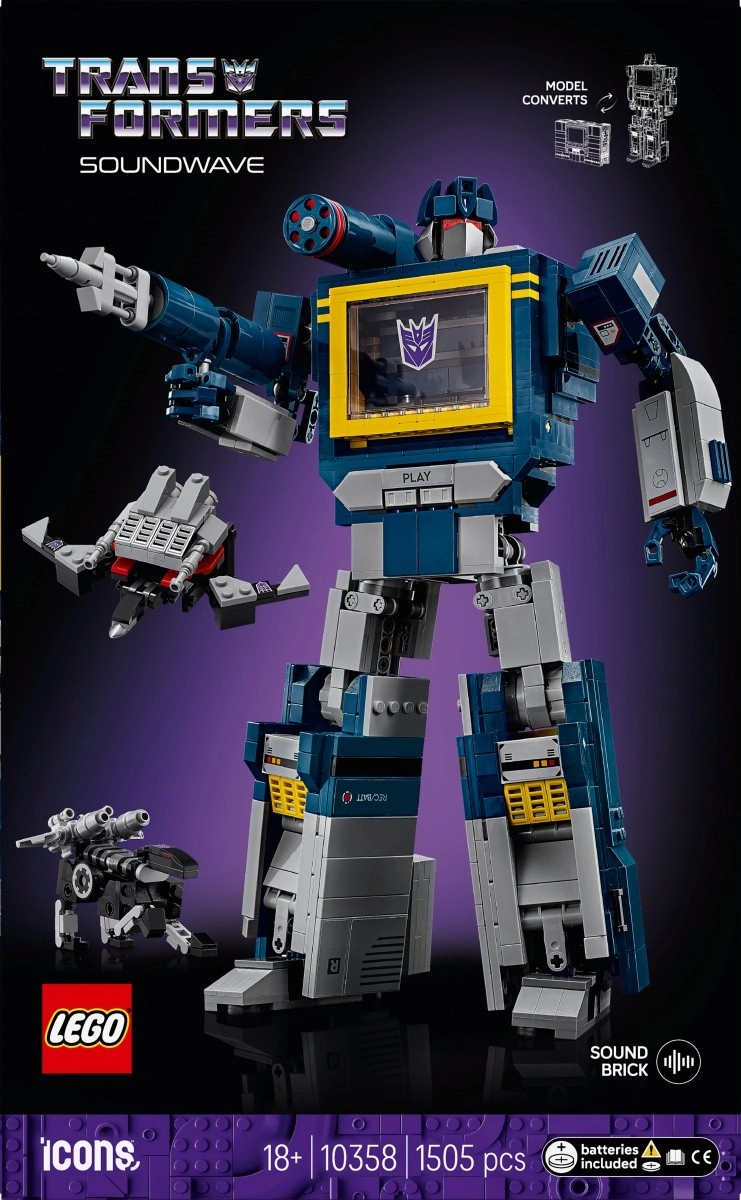 Priložena sta tudi zvesta spremljevalca RAVAGE in LASERBEAK, ki ju je mogoče preobraziti v kaseti, ki se prilegata Soundwaveovim prsim. Set je zasnovan za odrasle graditelje – navduši kot dekoracija za dom in pisarno, razstavni kos za ljubitelje znanstvene fantastike ter kot darilo. Aplikacija LEGO Builder ponuja interaktiven 3D priročnik, sledenje napredku in shranjevanje setov.