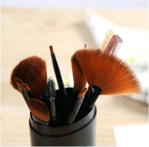Set 12 čopičev iz sintetičnih ščetin, z kakovostnim lesenim ročajem, vpetih v srebrnem nastavku. Čudovit set, ki je osnova za popolno ličenje tako v domačih pogojih kot za profesionalne aplikacije. Čopiči so najpomembnejši del pripomočkov, potrebnih pri delu vizažistov, stilistov ali kozmetičark. Uporaba sintetičnih ščetin bistveno poveča življenjsko dobo čopičev in olajša njihovo pravilno nego ter vzdrževanje skozi daljše obdobje. Čopiči so dodatno zaščiteni s folijastimi kapicami, vse pa se prilega v elegantno in kompaktno etui torbico.