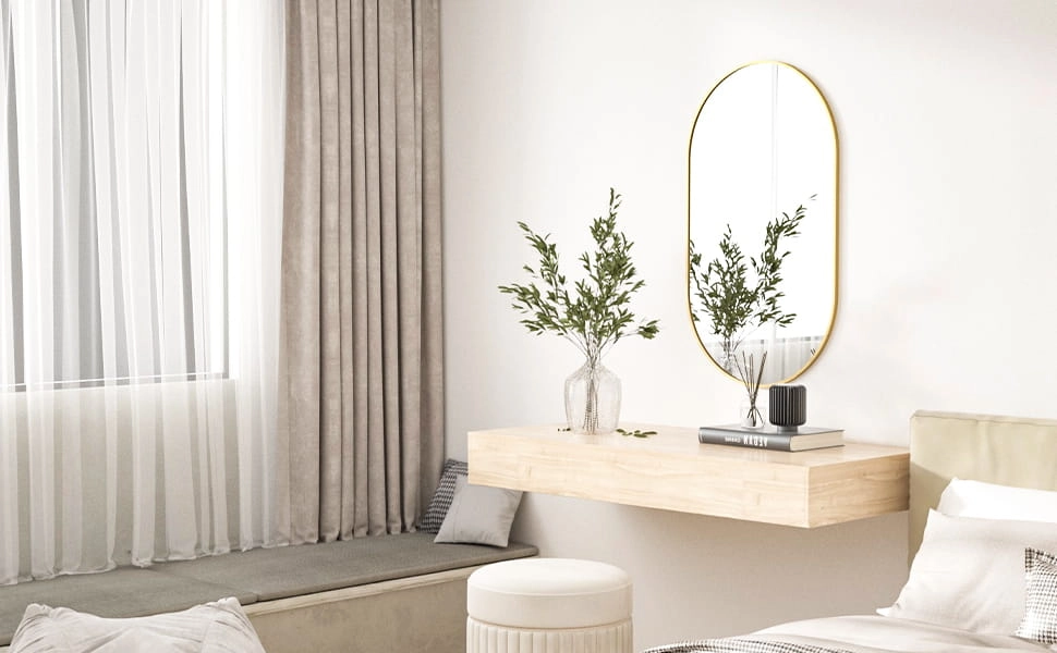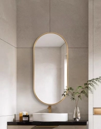 V svoj dom vnesite brezčasno eleganco. Ovalna oblika v kombinaciji z mat zlatim aluminijastim okvirom poudari industrijski značaj ter preobrazi kopalnico, predsobo in dnevno sobo v stilski in prijeten prostor. Kakovostno steklo omogoča popoln, nedeformiran odsev in hkrati vizualno poveča ter posvetli prostor.