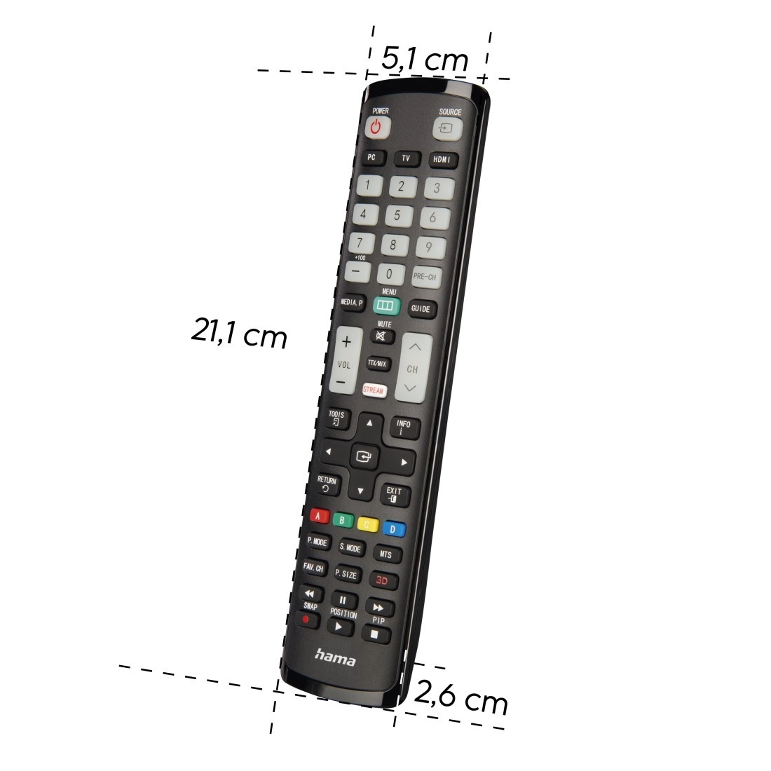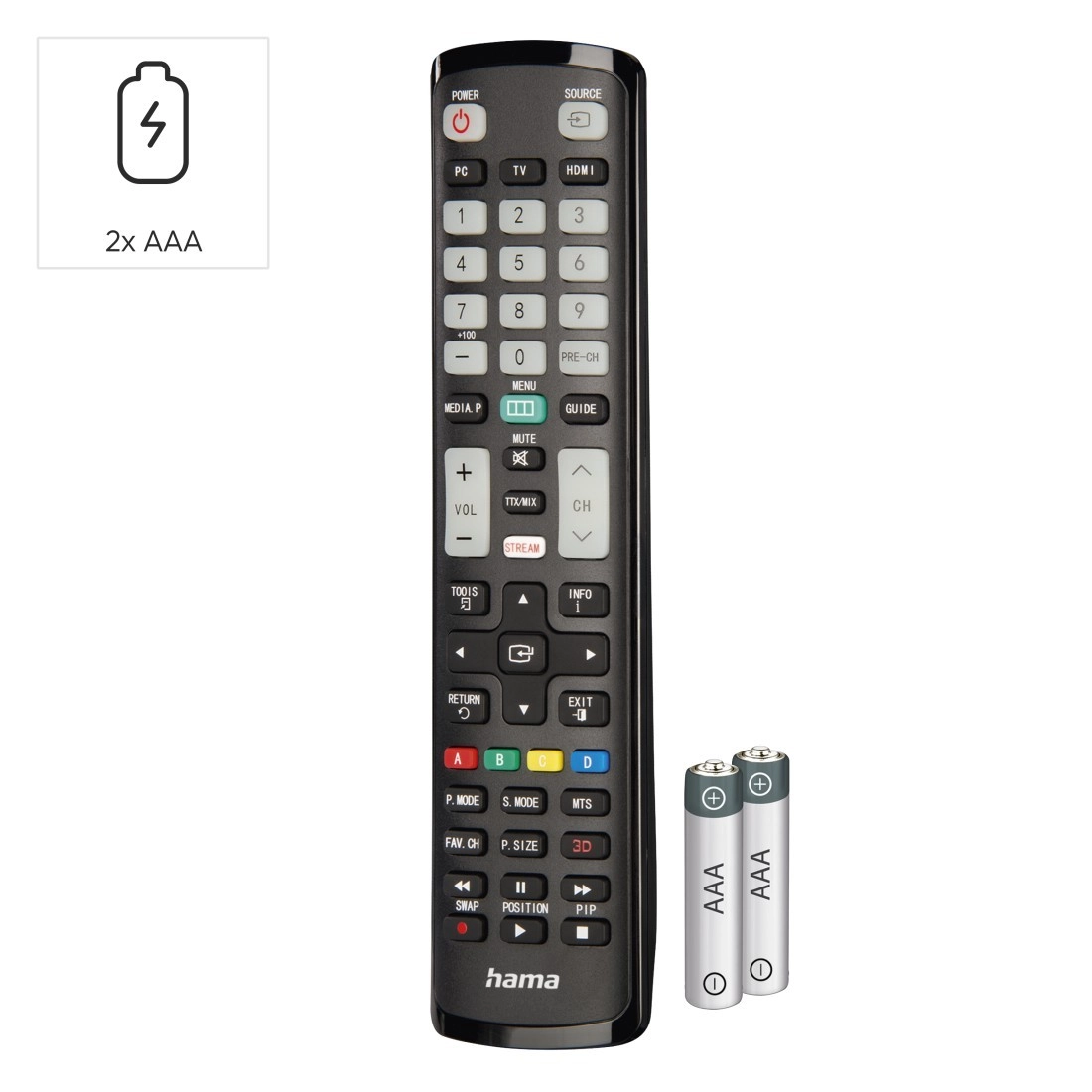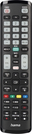 Za hitro navigacijo služi pametna tipka za streaming z takojšnjim vstopom v meni aplikacij. Svetleče (luminescenčne) tipke številk in glavnih funkcij zagotavljajo zanesljivo upravljanje tudi v potemnjenem prostoru brez prižiganja luči. Način Easy Mode lahko omeji napredne funkcije in prepreči neželene spremembe nastavitev – idealno za hotele ali starejše.