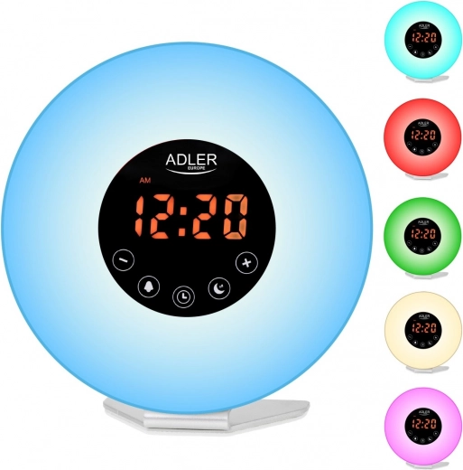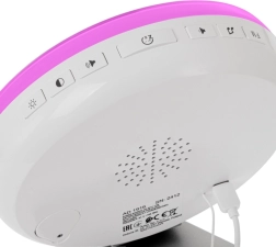 Zvečer boste cenili način uspavanja s postopnim potemnjevanjem in časovnikom na 15/30/60 minut. Šest barvnih načinov (modra, oranžna, indigo, vijolična, rdeča, zelena) ustvari prijetno atmosfero in služi tudi kot lučka. Zaslon ima 4 stopnje svetlosti (visoka/srednja/nizka/izklop), zato ponoči ne moti.