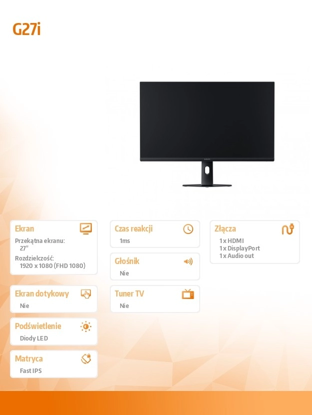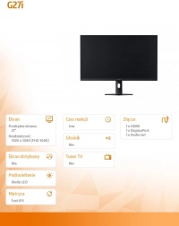 Igralni monitor G27i je odlična izbira za igralce, ki iščejo zmogljivost in zanesljivost. Ponuja tekoč prikaz in jasne podrobnosti za boljši pregled v igrah in pri večopravilnosti.