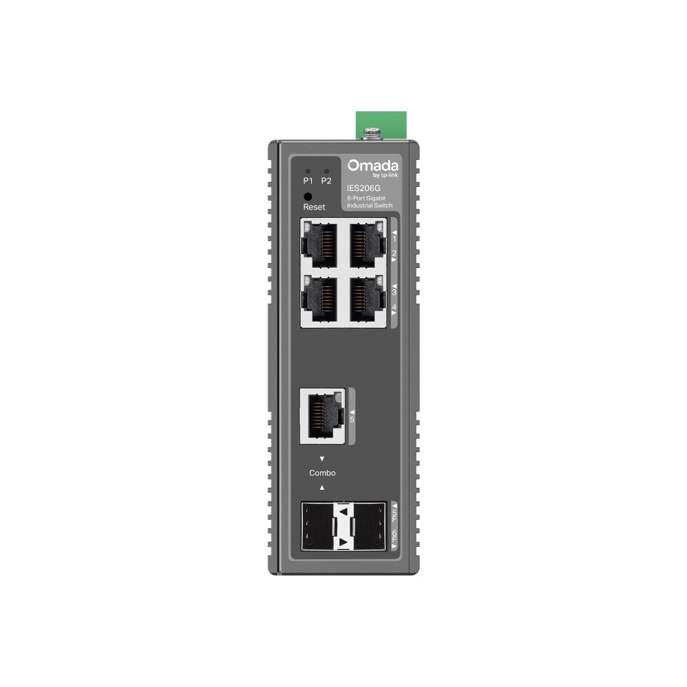 TP-Link OMADA IES206G je kompaktno industrijsko stikalo, zasnovano za stabilno in varno povezovanje naprav v proizvodnji, prometu, energetiki in pametnih stavbah. Šest gigabitnih vrat, vključno s SFP in kombiniranim RJ45/SFP, nudi prilagodljive možnosti uplinka in razširitve omrežja, medtem ko platforma Omada v oblaku omogoča enostavno uvedbo, nadzor in upravljanje od kjerkoli.